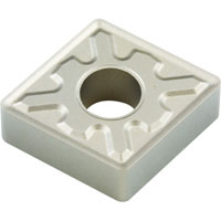Carbide Inserts for turning Aluminium and non-ferrous metals are typically positive rake with micro polished surface and are periphery ground creating a sharp cutting edge this reduces the risk of the material sticking to the inserts resulting in built-up edge, these inserts can also be used for cutting copper alloys and plastic materials like nylon. Some machinists use these inserts for fine finishing of stainless but the feed range is limited due to the weakness of the sharp cutting edge. Some manufactures offer these inserts with PVD (Physical Vapor Deposition) coatings including TiN (Titanium Nitride), ZrN (Zirconium Nitride) and TiAlN (Titanium Aluminium Nitride), TiAlN can be an advantage when machining stainless.